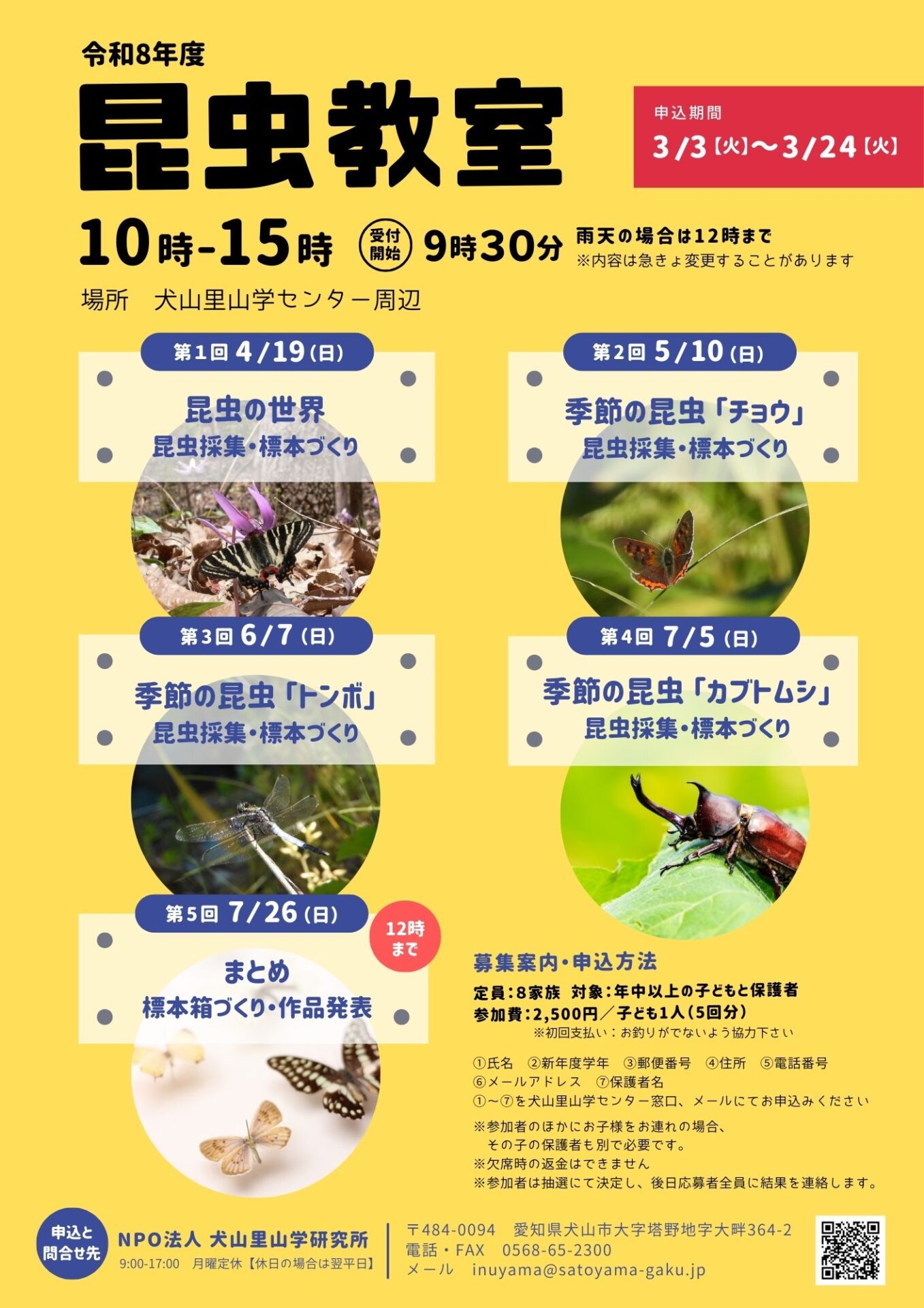 昆虫博士への入門編!採集から標本づくりまで学べます。終了時には認定証も発行します!