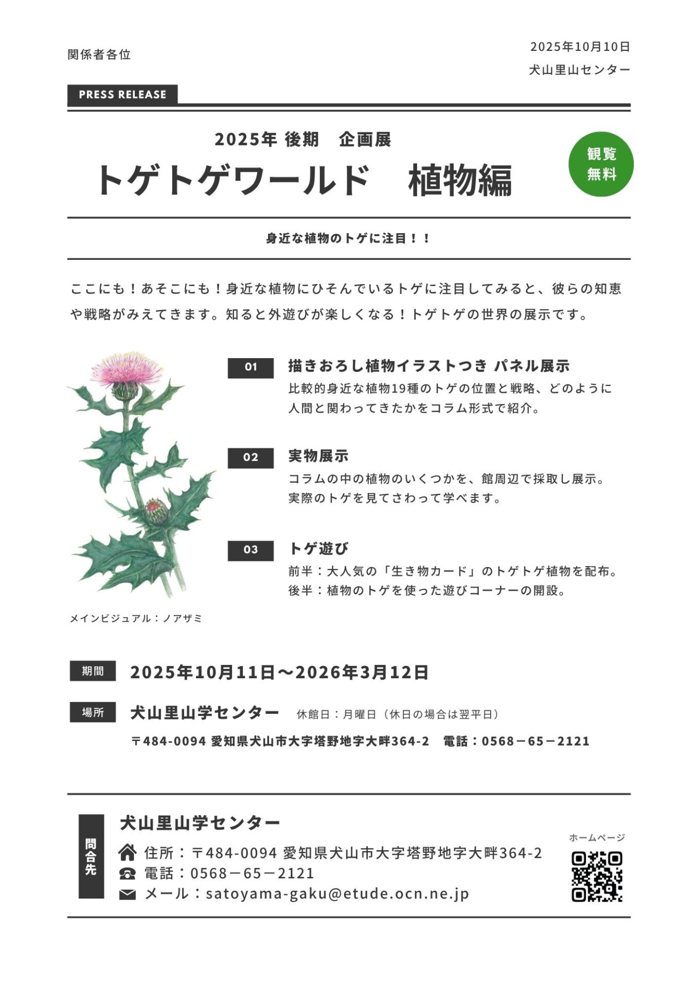 2025年度 後期企画展:トゲトゲワールド 植物編の情報です。